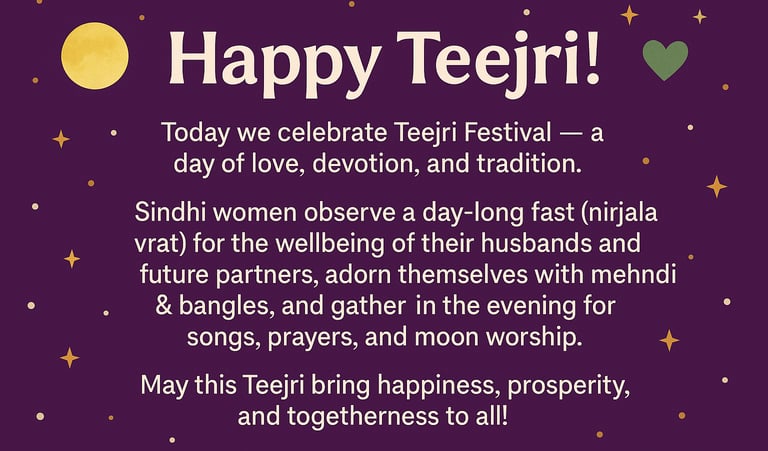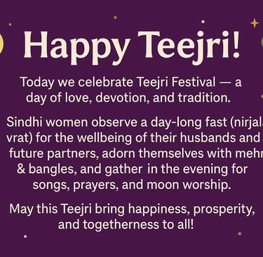 Today, the Sindhi community joyfully celebrates Teejri 🌕 — a day filled with love, devotion, and cultural pride.